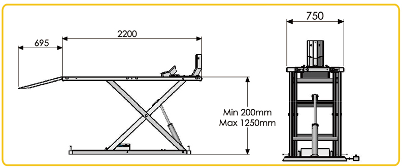 - This lift equipped with a special machanical device to block the dismounting of the back wheel without having to remove the lifting slide